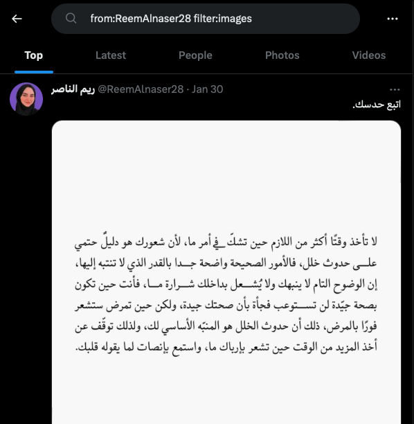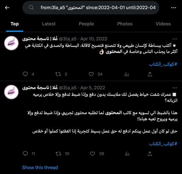 انسخ السطر السابق 👆 وجرب ابحث في أي حساب عن أي كلمة.