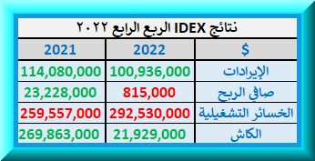 صافي الربح⬅️(0.8$)- مليون$ (مقابل 23.2 مليون$ 2021)