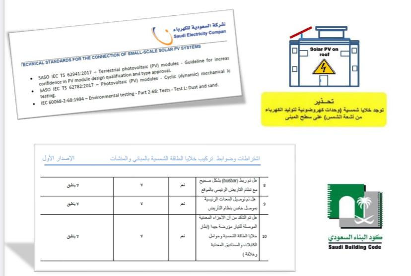 ايضا من المحددات أن لا يزيد قدرة النظام الشمسي فوق المبنى اومجموعة مباني عن ١٥٪ من قدرة محول التوزيع الكهربائي لنطاق التوزيع.