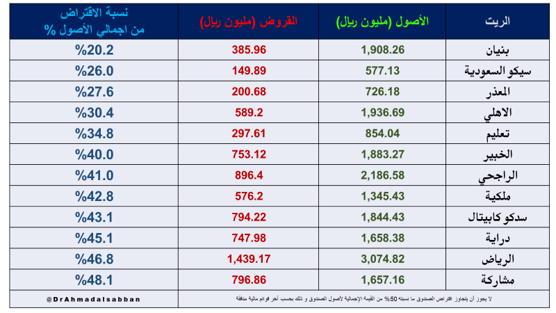 فتكون نسبة القروض للاصول = 20.2% وهي الاقل في القطاع