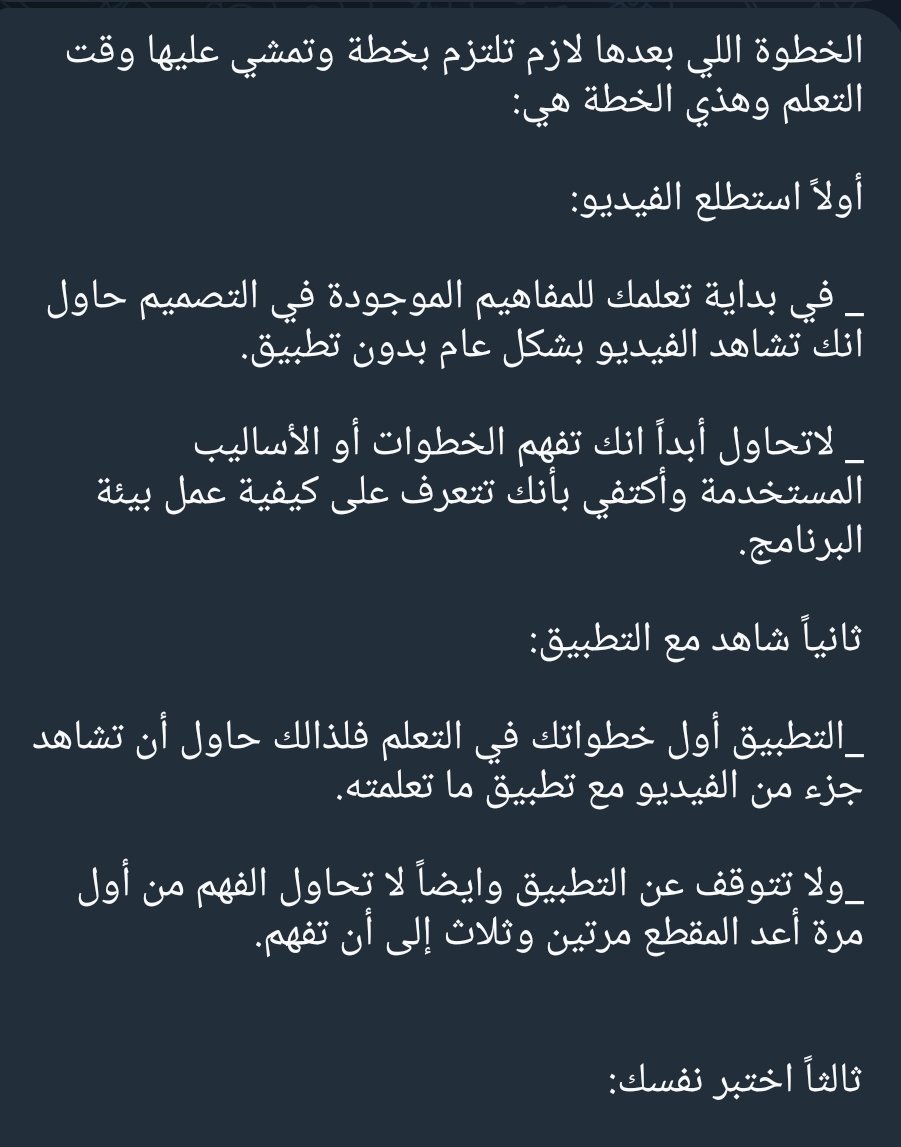 وبعطيك ايضا خطتي اللي مشيت انا عليها ببداية تعلمي التصميم عشان تمشي عليها وانت تتعلم.