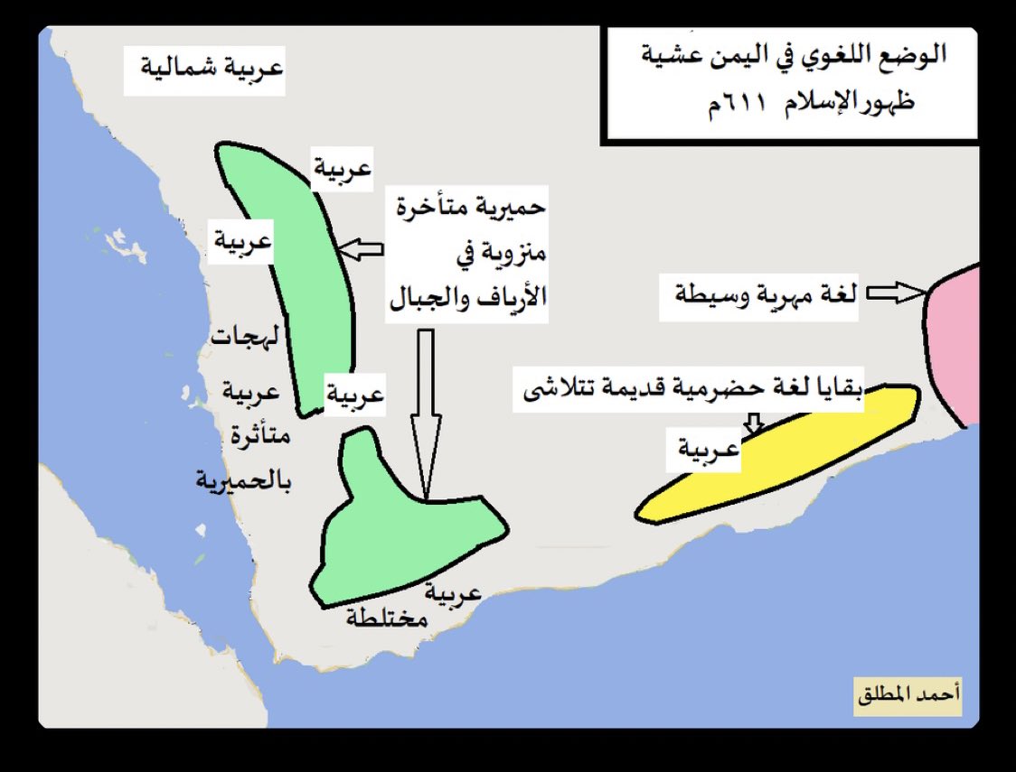 وكذلك سبأ وحمير كانوا مجاورين للعرب وتكلموا بلغة سامية جنوبية تختلف عن الوسطى.