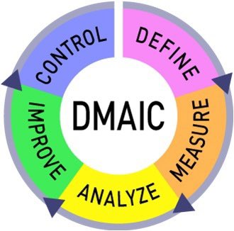 إن منهجية DMAIC هي منهجية منظمة تستخدم لتحسين المشاريع وزيادة فرص نجاح حل المشاكل. تتكون هذه المنهجية من خمسة مراحل تتمثل في الحروف الأولى من الكلمات الإنجليزية التي تمثل كل مرحلة، وهي: