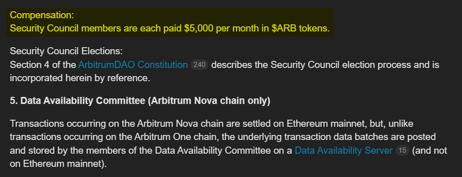 هناك الكثير من الأمور المضحكة في هذا الاقتراح، منها رصد تعويض بقيمة 5,000$ على هيئة عملات #ARB تدفع لـ 12 شخص يمتلكون صلاحية توقيع المعاملات من محفظة المشروع متعددة التوقيعات Multi-Sig Wallet.