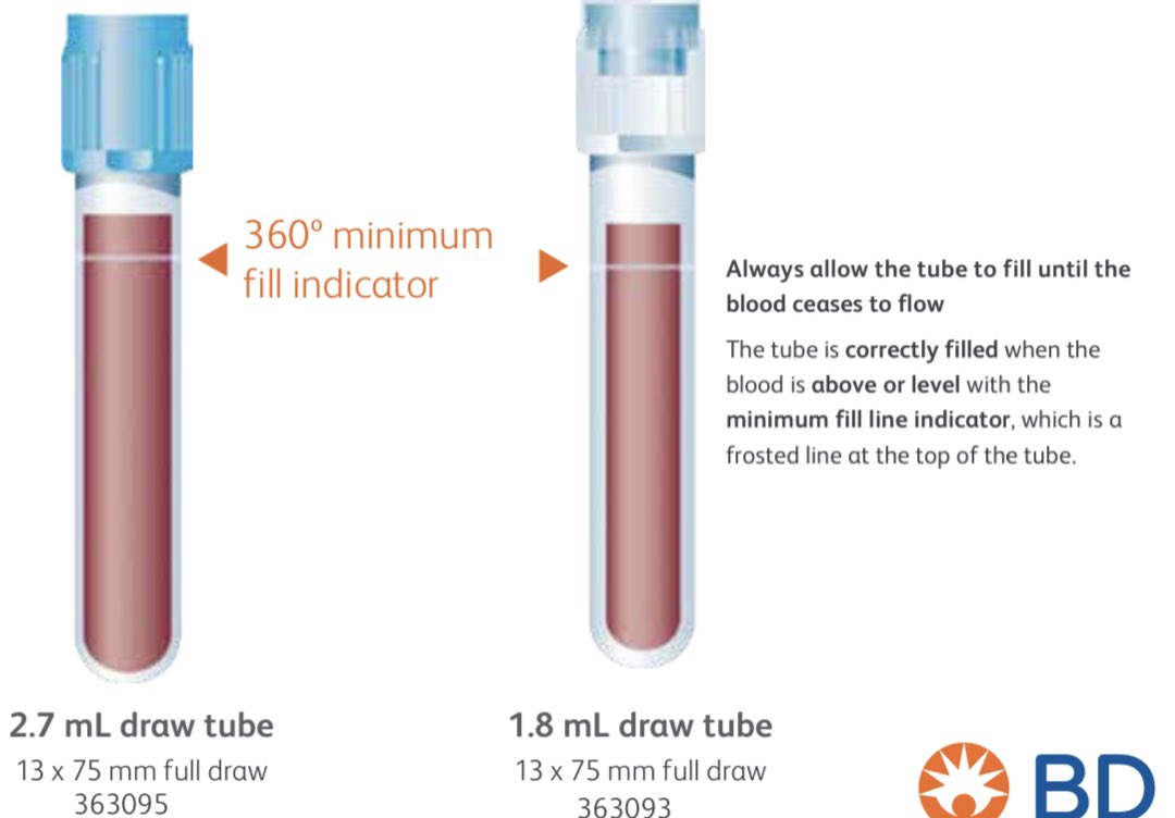- يفضل بأن يكون في الأنبوب ما يقارب 3.2% من مادة السيترات (citrate) التي تساعد على الارتباط بالكالسيوم وبالتالي تمنع نشاط سلسلة التخثر (coagulation cascade).
