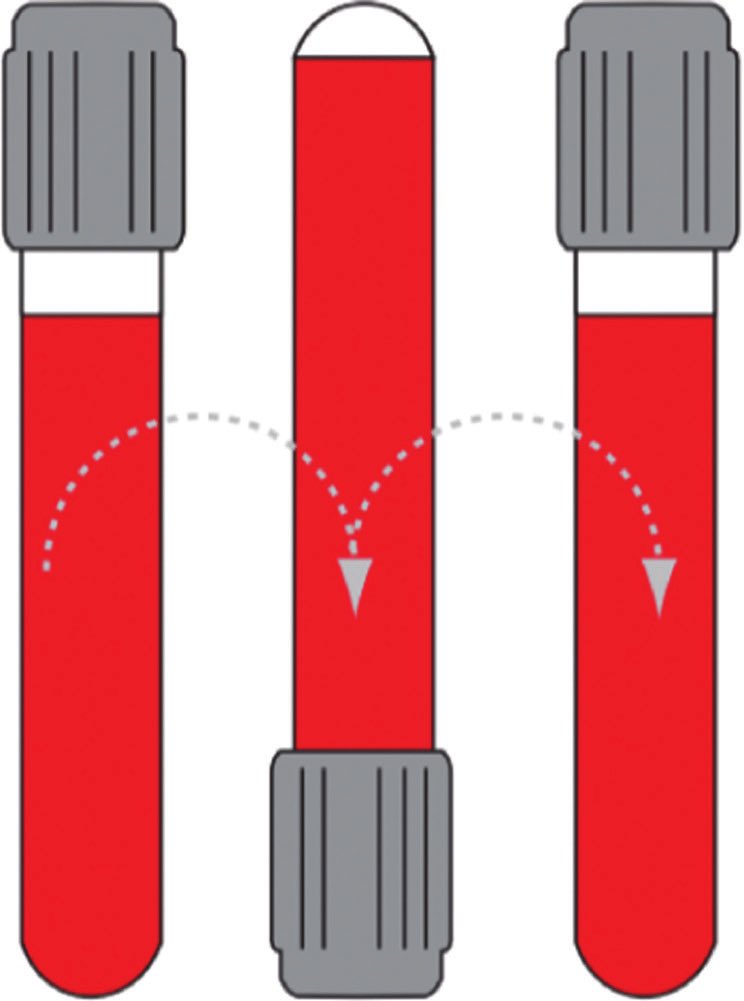 - عدم محاولة نقل كمية من الدم لكمية أخرى (from one tube to another) ويشترط خلط (end-over-end tube inversions) كمية الدم الموجودة في العينة بعدد 3 إلى 4 مرات.