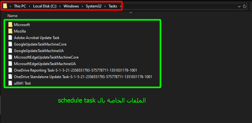 ال Schedule Tasks يوفر طريقة أنه يشغل برامج بشكل دوري. يستخدم من قبل البرامج لتشغيل المهام الدورية مثل تحديث البرامج. المخترق يستخدمها عشان يتأكد أن ال backdoor الخاص فيه يبقى شغال على النظام حتى بعد أعادة تشغيل الجهاز