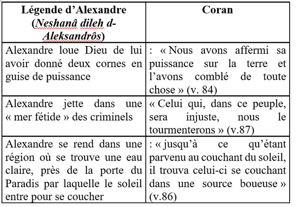 Le Coran s'inspire d'une légende chrétienne sur Alexandre le Grand, alias dhu-l-qarnayn (sourate 18 versets 83-101).