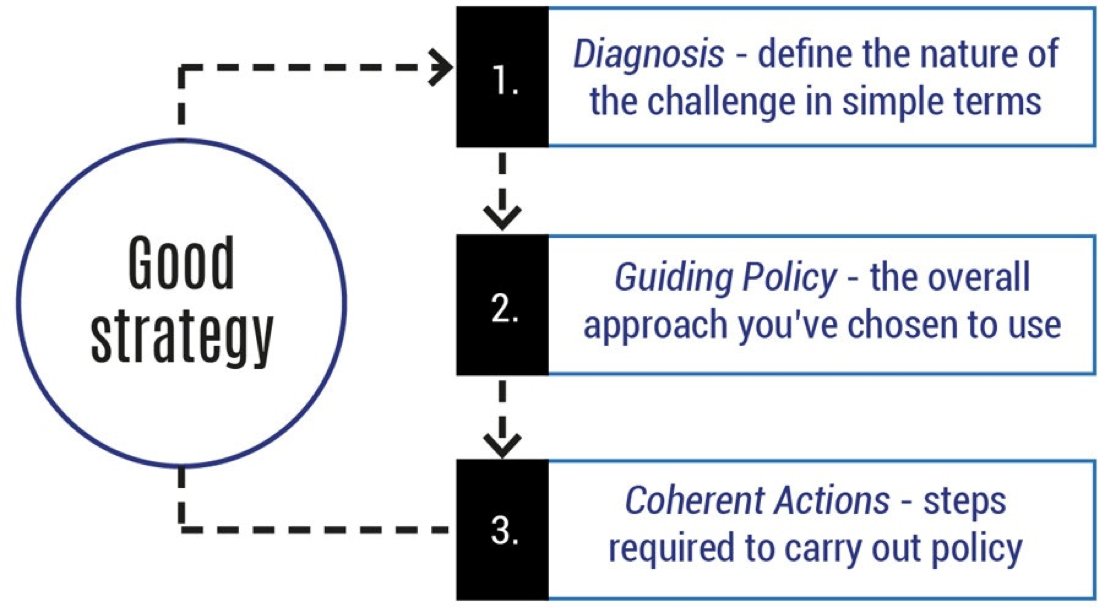 ١- إنشاء خطة استراتيجية لا تعترف بالمشكلة الحقيقية التي تواجه المؤسسة. الخطط السيئة تخترع حلول لمشاكل ثانوية وتترك المعضلة الأصلية. مثل اللي ينجّد سيارة محركها مضروب