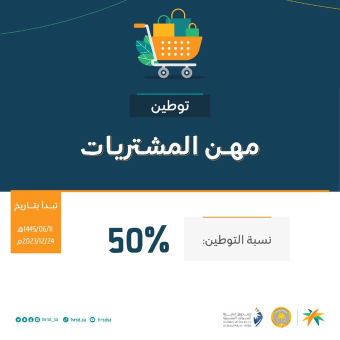 2️⃣ توطين مهن #المشتريات بنسبة 50% للمنشآت التي يعمل بها 3 عاملين فأكثر في مهن المشتريات والمهن المستهدفة كالآتي:
