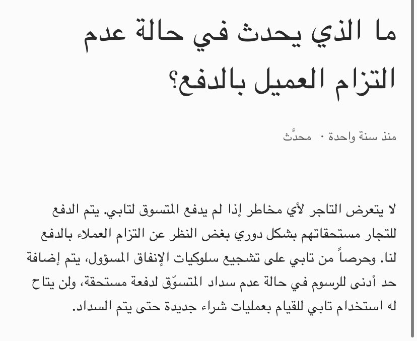 الزميل @AbdulelahSu اكد على معلومة انه تابي 100% يدفعون للمتجر حتى لو تأخر العميل عن الدفع