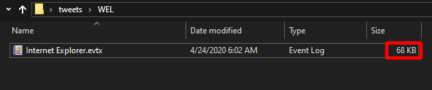 ملفات ال WEL تكون بصيغة evtx. هذي الملفات تحتوي على header و بعدين السجلات تكون موجودة في شي يقولون له chunk. ملف ال evtx لازم يحتوي على header و على الأقل chunk واحد. مساحة ال header دائما تكون 4096 و ال chunk دائما تكون 65536 bytes, لو نجمعها بتكون 68KB.