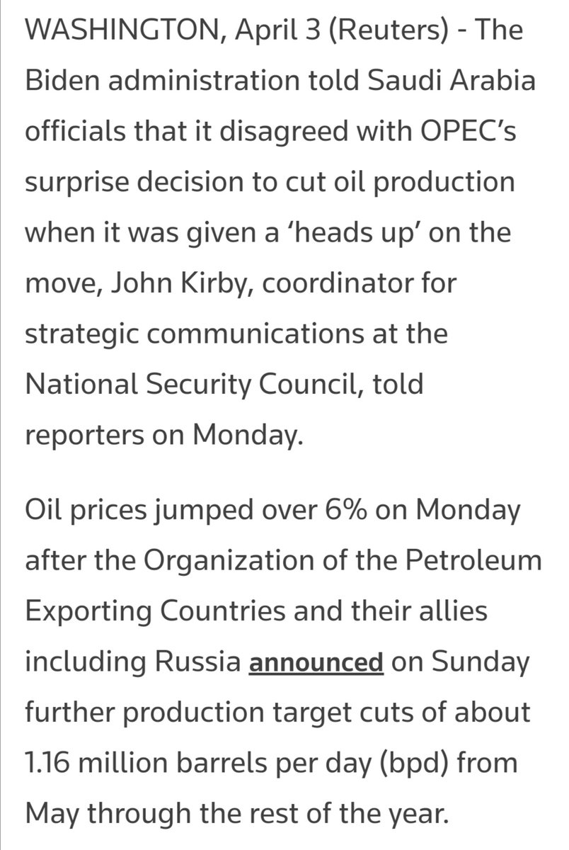 لأ هي مفاجأة، زي مفاجأة التقارب مع إيران كده. وزي مفاجأة قرار السعودية برضو تخفيض الإنتاج في 2022 رغم زيارة بايدن للمملكة قبلها.