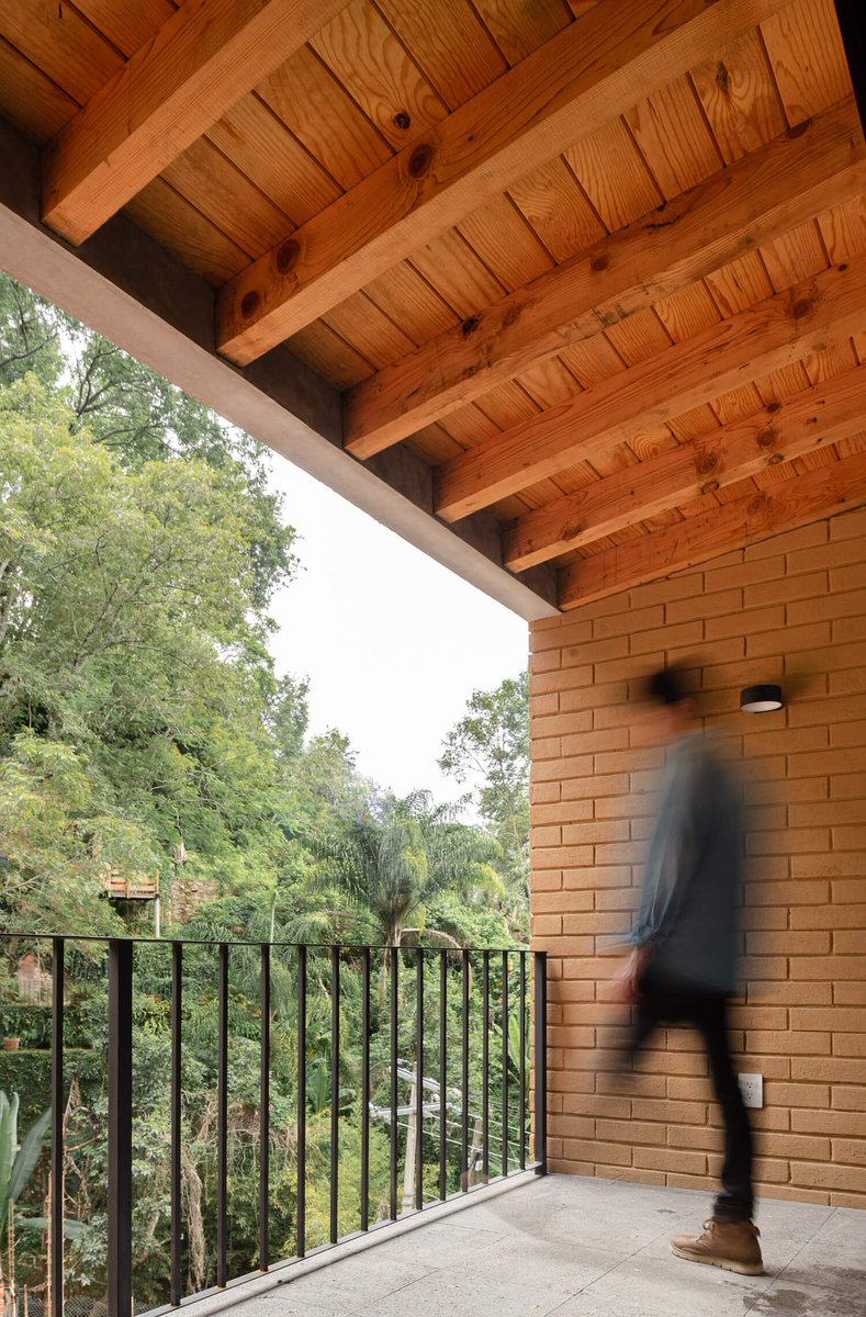 المواد جزء مهم من المشروع. الخرسانة الظاهرة للجدران ، والخشب للتكحيل ، وحجر المحجر للجدران واللمسات المرئية ، والطين والحجر للواجهة