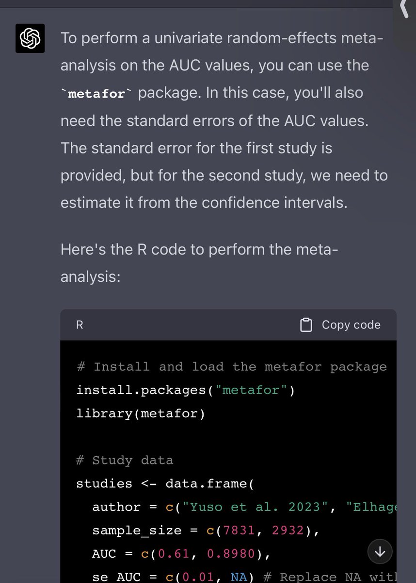 *ملاحظة: جميع التحاليل سواءً للدراسات النظرية/الميتا انالسس وغيرها يقبلها البرنامج ويساعد ChatGPT بتوفير كود مناسب لاستخراج النتائج