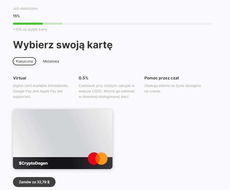 Aby posiadać kartę należy przejść proces KYC, który trwa kilka minut i karta jest gotowa do użycia.