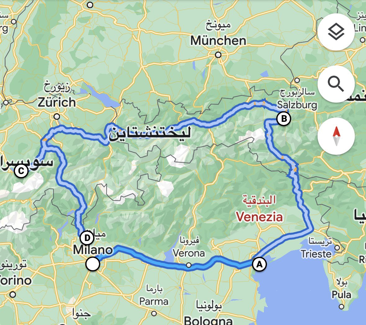 يوجد مسار اخر وبنفس التكلفة تقريباً وهو كالتالي: