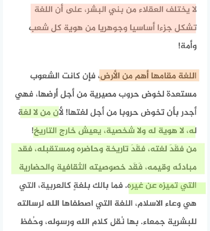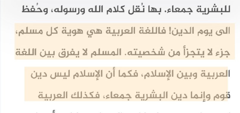 ▪︎فلسان كل قوم من الاقوام هو بحد ذاته ( أية إلهية) و الاستنقاص من لغة للترفيع من لغة اخرى هو نفسه استنقاص من إبداع الله في الوجود ، بالتالي تلك عقدكم النفسية، و ليست دين بل كهنوتية مريضة للتحكم بوعي العوام الذين لا يفقهون شيء لا في العقل و لا الدين .