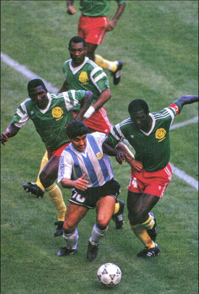 🎙️يقول مارادونا : قبل ان تبدأ المباراة جاء مدافع كاميروني طويل القامة يدعى"ماسينج" ليصافحني ويبدي إعجابه بي وبعد دقائق قليلة اوسعني ضرباً في الملعب !😳