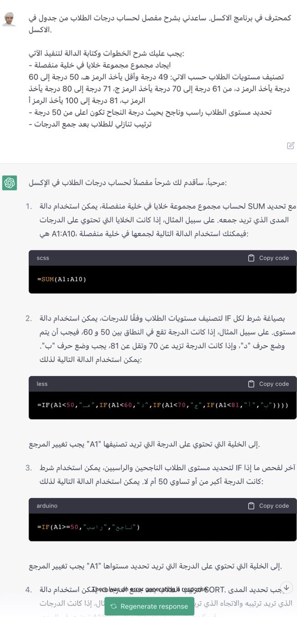 وأيضاً تتباين في الصياغة حسب المستخدم والنتيجة التي يحصل منها على إجابة ممتازة.
