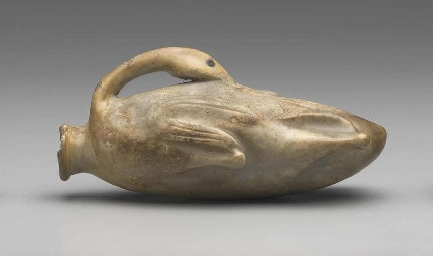 وهذا الإناء يأخذ شكل الجرة الكبيرة، وتبلغ أبعادها: (العرض × الارتفاع × العمق: 6.2 × 15 × 7.4 سم)، فهي منحوتة على شكل بطة، وكان البط والإوز من الأشكال الشائعة لأواني التجميل والملاعق وأدوات الزينة الأخرى عبر تاريخ الفن المصري القديم.