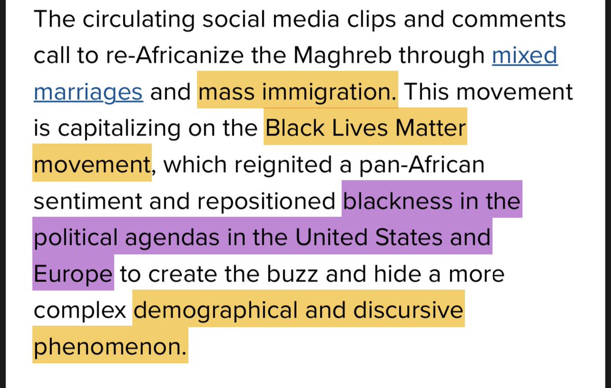في مقال كان بيتكلم عن انتشار الافروسينتريك في الميديا والاجندة الامريكية والاوروبية الجديده لدعمهم ولدعم حركات الهجرة الضخمة في دول شمال افريقيا