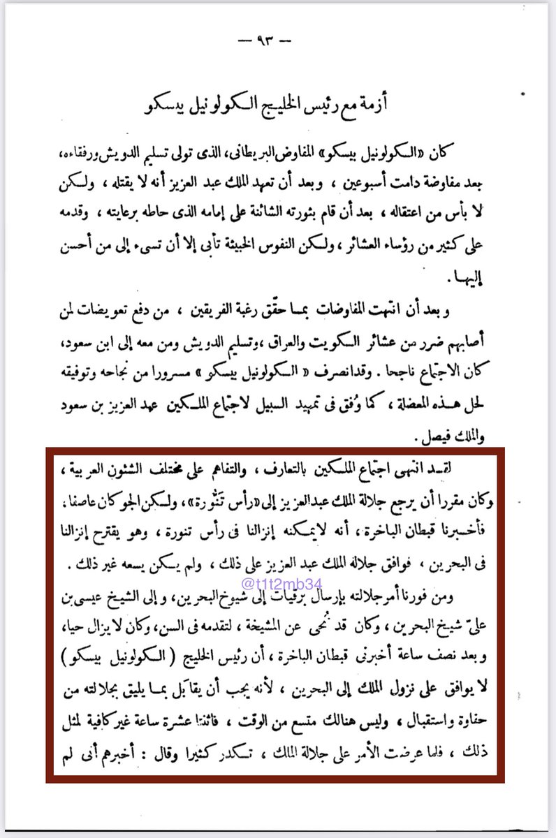كان اكثر مايخشاه الانجليز هو ان يتواصل #الملك_عبدالعزيز مع شيوخ الخليج والوثائق البريطانية اثبتت ذلك في اكثر من رسالة،،