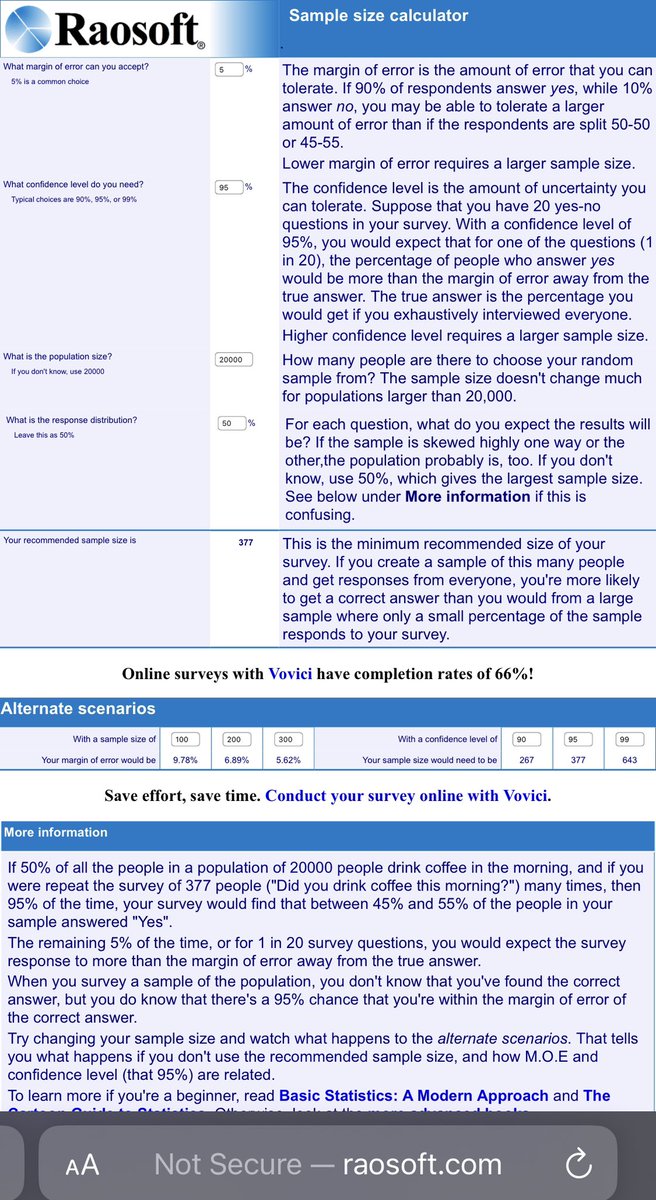 اذا انت عندك مثلًا ٥٠٠ الف شخص تبغى تدرس شيء محدد فيهم مايحتاج تاخذ منهم كلهم اجوبة، يكفي انك تاخذ من ٣٨٤ شخص وهذي بتكون بشكل تقريبي تمثل لك ال٥٠٠ الف شخص
