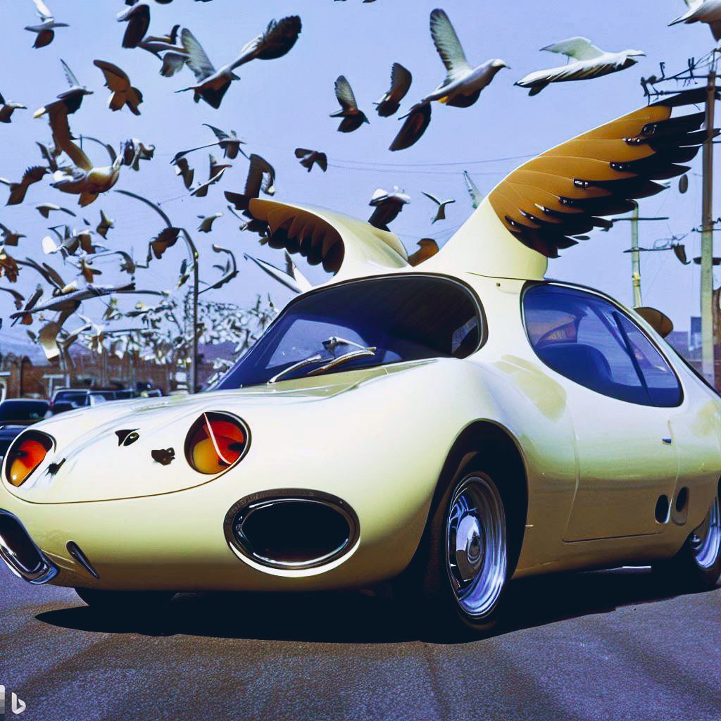 (MOF-W2。斬新なウィングで話題を呼ぶが鳥を呼び寄せる不具合が見つかりリコールされる。写真提供:小鳥遊モーターズ)