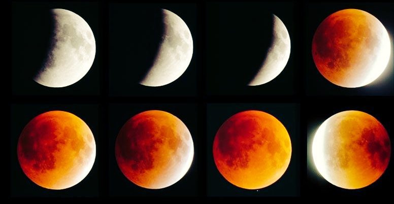 فلا يعقل أن يكون بداية الحجب ظلام دامس لا يظهر اى تفاصيل للسطح وعند الحجب الكلى لونه أحمر أو برتقالى محمر مع إمكانية مشاهدة تفاصيل سطح القمر بوضوح وبصورة عادية ويعود الظلام فى نهاية الخسوف !!