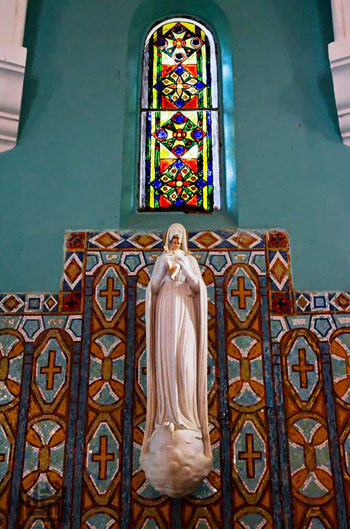 روماني مبني بالطوب ومغطى بالقرميد الروماني و تضم كذلك تمثالًا فريدًا من نوعه في العالم أجمع ذلك الذي يوجد أعلى الكنيسة ويُمثل السيدة العذراء وهي تُقدم طفلها كرسالة سلام للعالم ولكل المارين بقناة السويس واللي قام بإنشاء هذا المبنى أحد أبناء ديليسبس وهو "تشارلز إيمي ديليسبس"