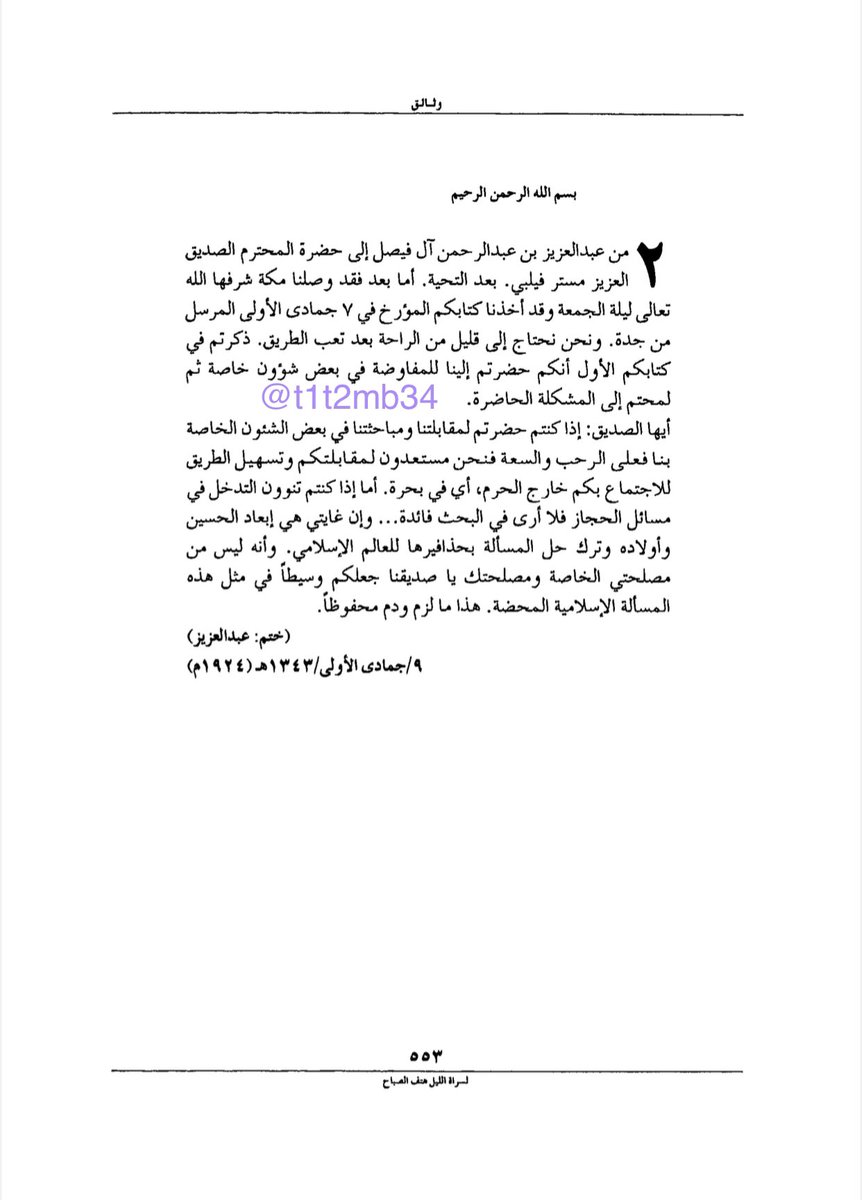 وعندما دخل #الملك_عبدالعزيز الحجاز كان ذلك مفاجأة لبريطانيا فكلفت فيلبي أن يذهب اليه بوساطة بريطانية تقضي بأن يترك الحجاز لعلي بن الحسين بشروط مصالحة ترضى عنها الرياض