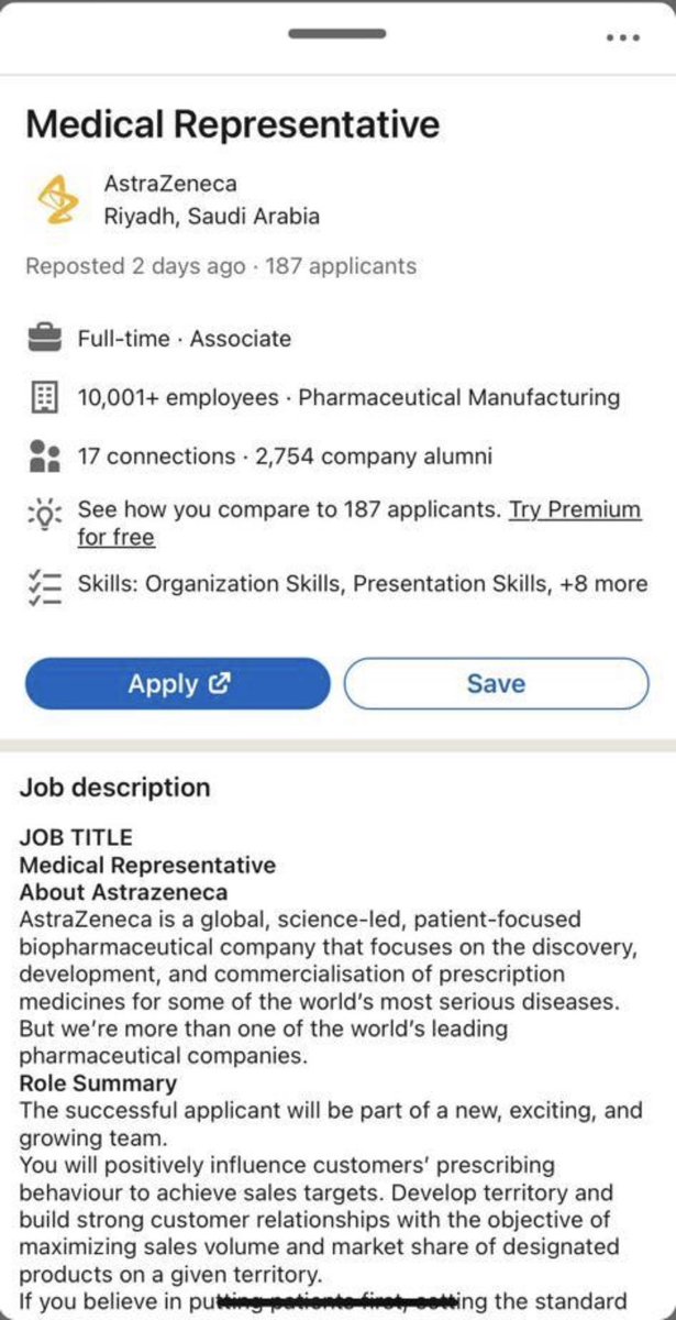 بتلقو ركن خاص بشركات الادوية زوروه خلو معاكم CV وتعرفو عالناس وخذو ارقامهم تواصلو معاهم كل فترة لو في وظائف وتابعو حساباتهم في لينكد ان لانه غالبا حيسوو ريتويت لاي وظيفة من شركاتهم