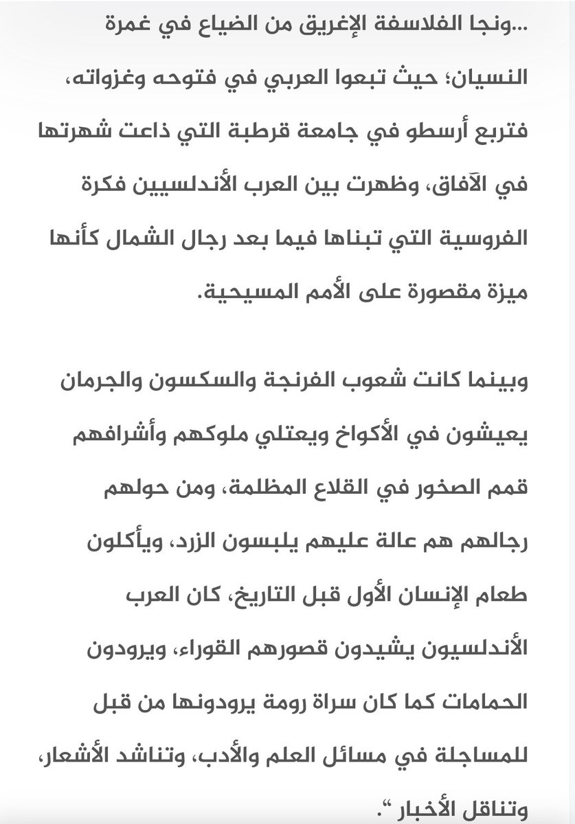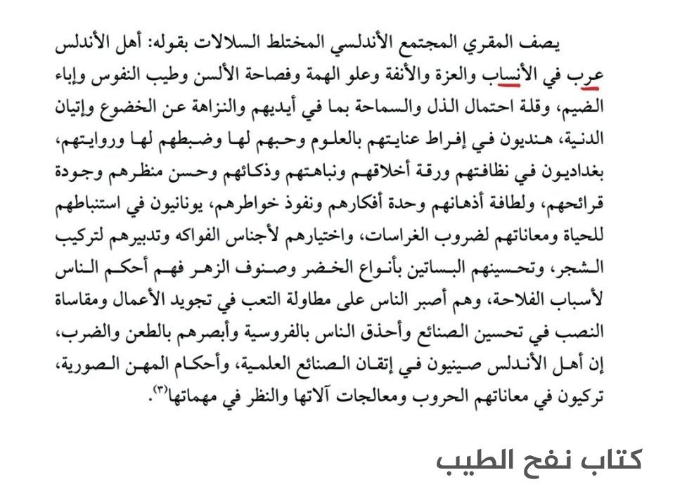 📌 بعد جردنا لسكان الأندلس وصفاتهم، يتبين أنا ما يجمع عليه المؤرخون أن #العرب هم سواد هذه #الأمة_الأندلسية وهذا مايفسر نبوغ العلوم في هذه البلاد عن غيرها، وتزين كل قطر من أقطارها بزخرفات لغة الضاد الشامخة.
