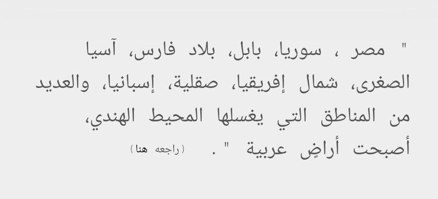 وهذا ماقاله إليزيه ريكلو (1830-1905م)، الجغرافي الفرنسي الكبير في مؤلفه الموسوعي (The Earth and Its Inhabitants, Volume 8)، أن مناطق الشام والرافدين وشمال إفريقية حتى شبه الجزيرة الإيبيرية هي أراضٍ عربية يستوطنها العرب، جاء في الكتاب ص431