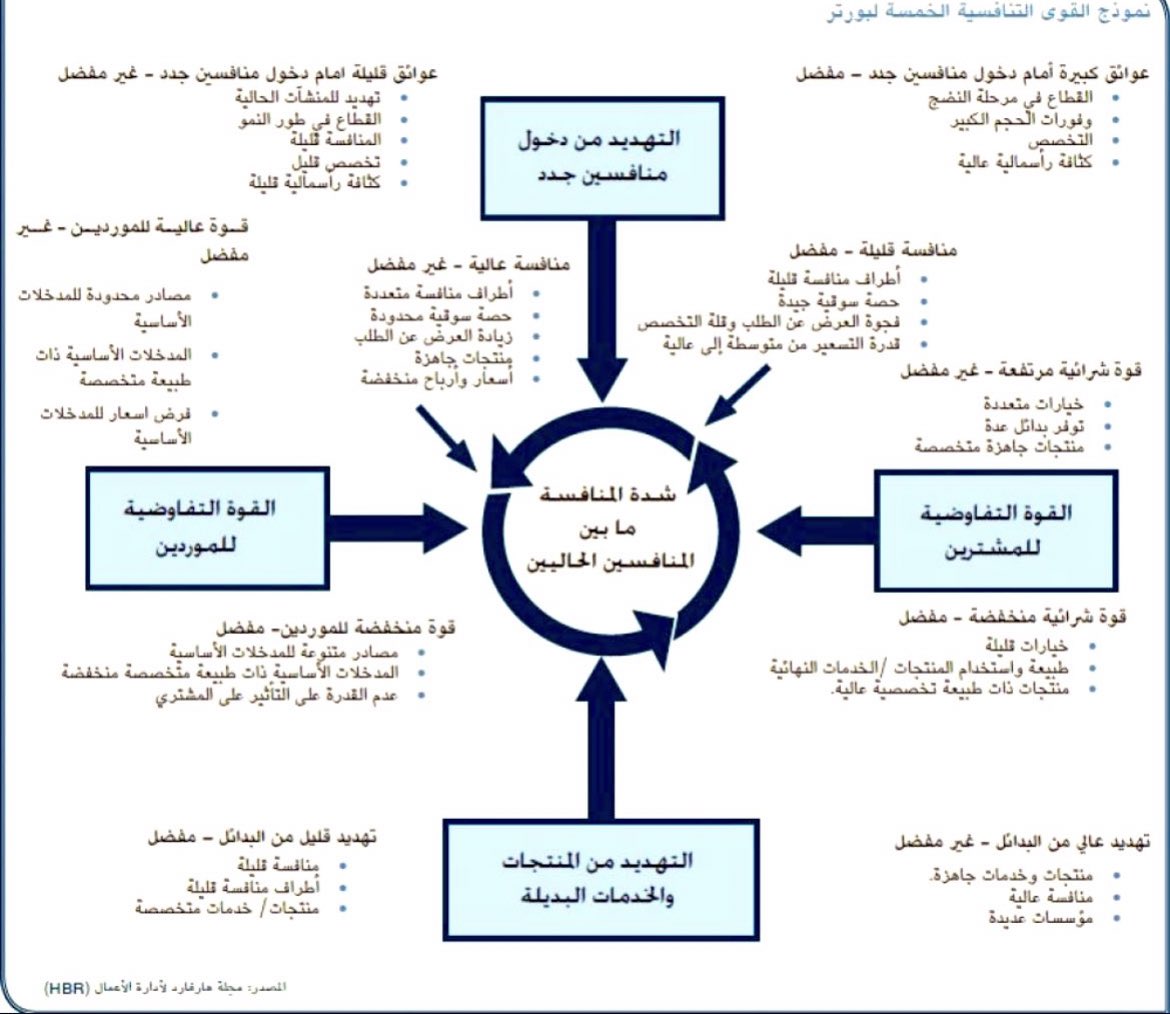 حتى لا تخسر، قبل الدخول إلى السوق استخدام نموذج #بورتر والذي يقدم تصور سهل لتقييم وتحليل قوة المنافسة.