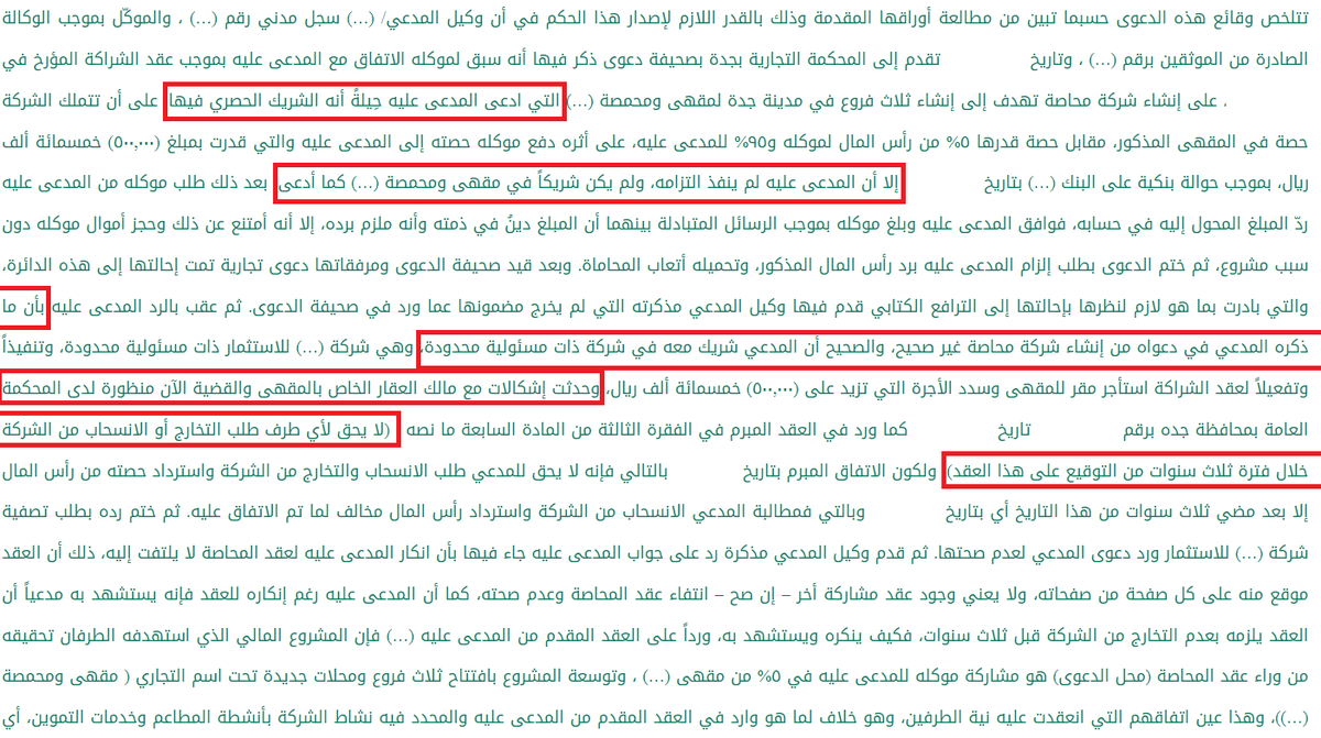 ✅حدوث ظروف خارجة عن الإرادة تسببت بتأخير المشروع وعدم وجود تفصيل في العقد بما يجب عمله في مثل هذه الحالة سوى اتفاقية عدم الإنسحاب أو التخارج قبل 3 سنوات من سريان عقد الشراكة.
