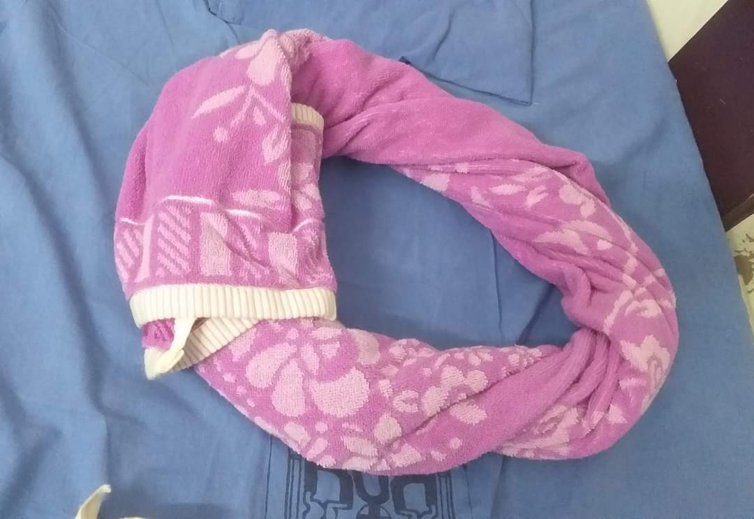 தாய் இல்லாத நேரங்களில் ஒரு பெரிய டர்க்கி டவலை எடுத்து கயிறாக முறுக்கி படத்தில் உள்ளது போல செய்து அதன் நடுவில் படுக்க வைக்க வேண்டுமாம். அப்போதுதான் குழந்தைகளுக்கு தாயின் கருப்பையில் இருப்பது போன்ற ஃபீல் வருமாம். அழாதாம்.
