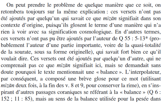 Revenons au Coran: au cours du processus de canonisation du texte, un auteur est tombé sur la sourate 55 et a vu la mention de la "balance" au verset 7.