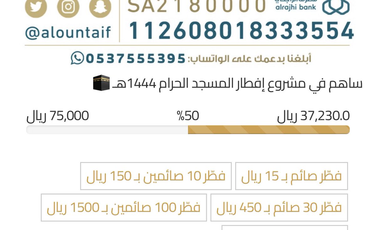- تكسب أجر الصائمين بالحرم وكل هذا بـ 15﷼