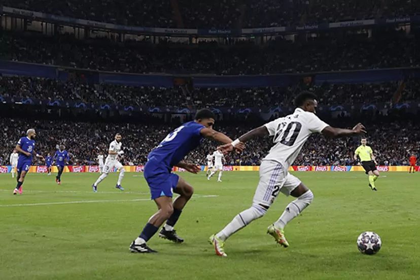 في الواقع في لقطة في الدقيقة 55 راوغه البرازيلي متتاليتين بثلاثة تغييرات مدمرة في السرعة. مع كل تباطؤ وإنطلاقة لاحقة كان جيمس يفقد الأمتار. على الرغم من أنه يجب نكون منصفين فإننا ندرك أنه بينما يتولى فينيسيوس مسؤولية تجاوز الظهير الأيمن يجب ألا يخشى كارفخال على مركزه.
