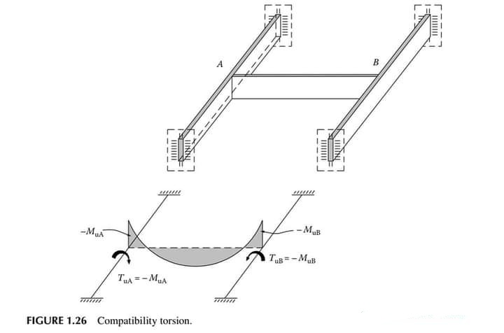 مما يولد عزم فتل(Torsion moment) وتحديدا compatibility Torsion. عموما في المنشأت الخرسانية لتحقيق تثبيت كامل ( full Support ) معين سواء (pinned, fixed, roller )بين اتصال العناصر الامر #معقد مقارنة مع المنشآت المعدنية نظرا لان الخرسانة المسلحة مادة غير متجانسة(non-homogeneous).