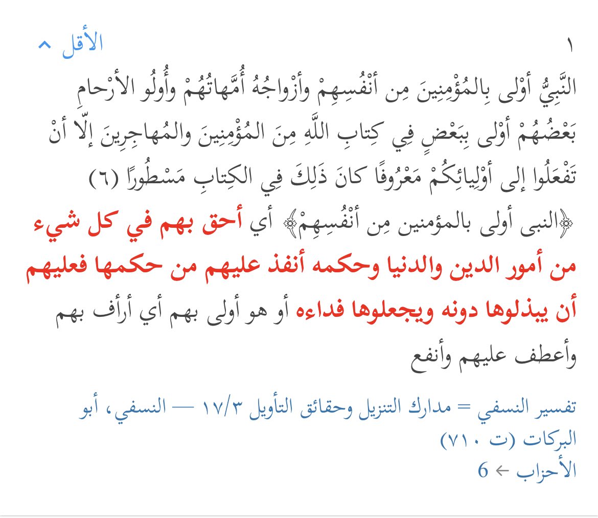 هذه المنزلة كانت فقط للنبي ﷺ ثم نقلها إلى علي (ع) فصار اولى الناس بالناس.