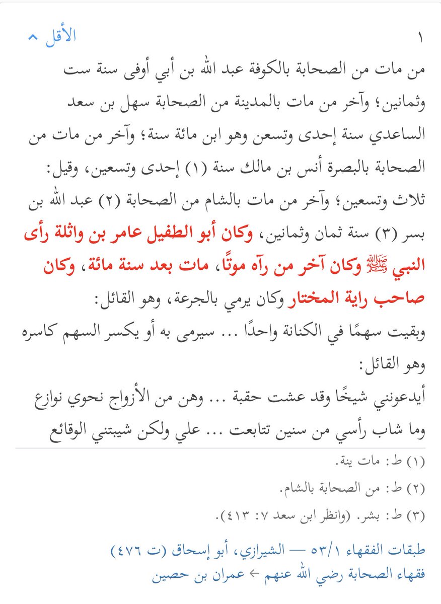 @abdux_xx وهو فهم آخر الصحابة موتاً عامر بن واثلة، فهو استنكر الحديث بالبداية لأنه لم يفهم منه الحب والنصرة، بل ولاية علي على الأمة، لذلك صار شيعياً رافضياً بشهادة علماء مذهبك 👇🏽