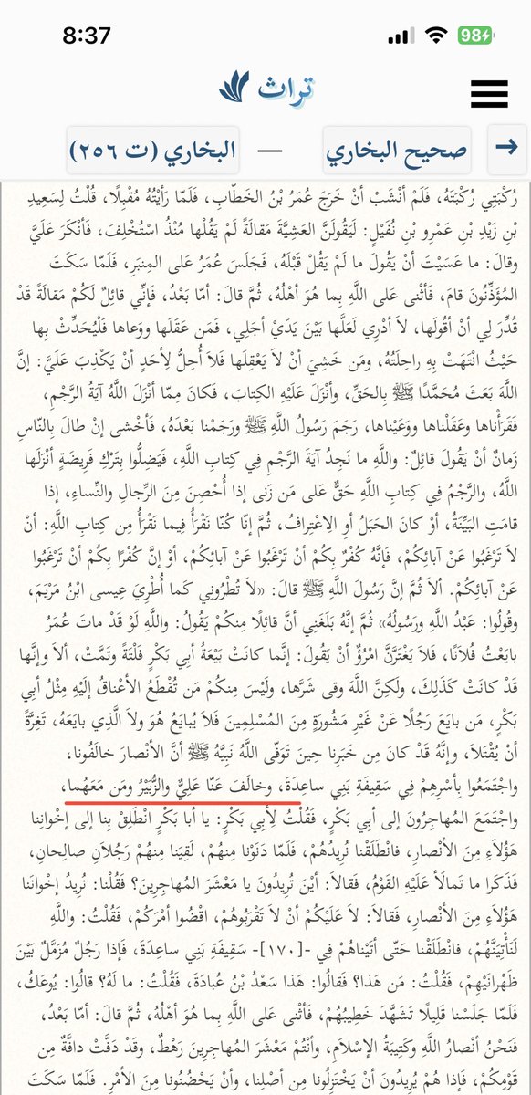 وكبار الصحابة كانوا يرون أن الأمة هلكت في وقت مبكر جداً بعد وفاة النبي ﷺ ، وهو منسجم مع رؤيتنا، فخذ هذه الهدية 👇🏽