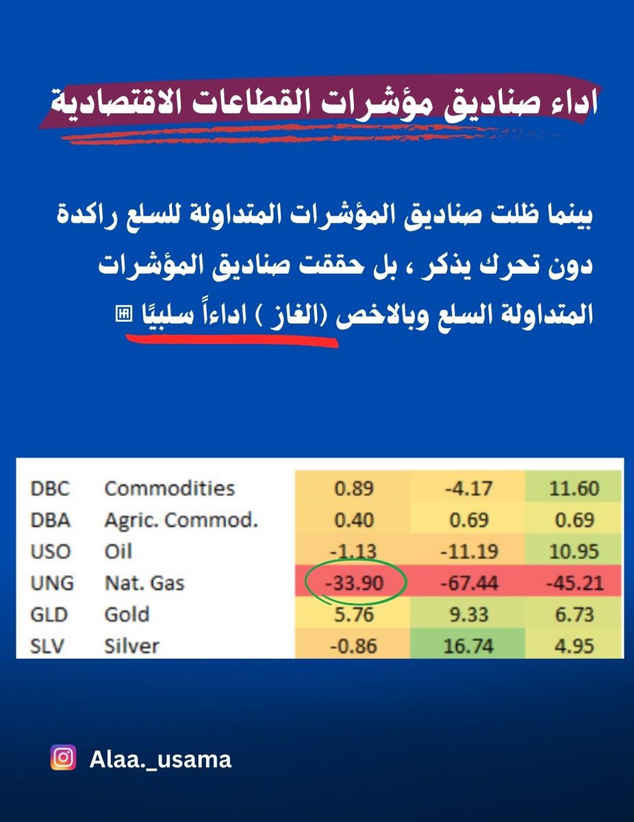 2- بينما ظلت صناديق المؤشرات المتداولة للسلع راكدة دون تحرك يذكر ، بل حققت صناديق المؤشرات المتداولة السلع وبالاخص (الغاز ) اداءاً سلبياً⛽️