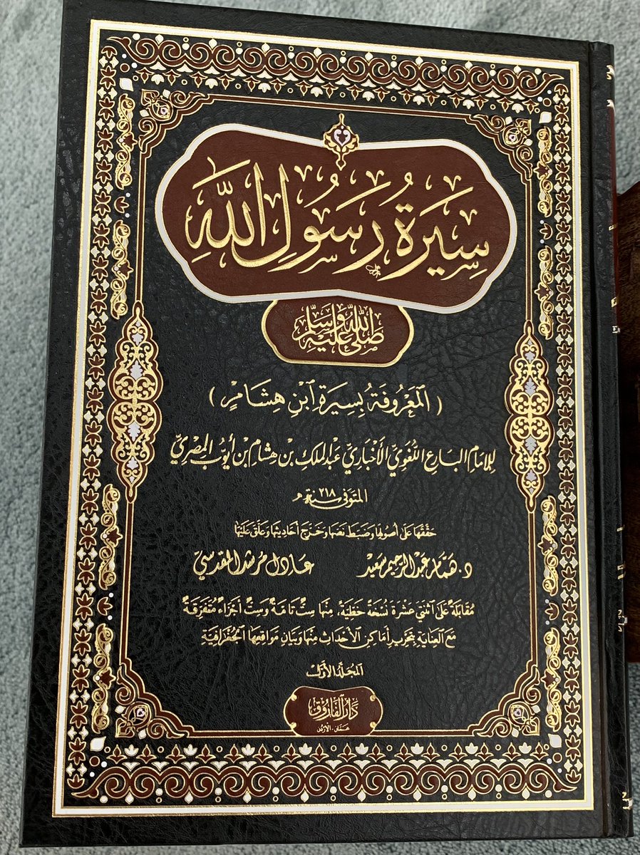 سأبدأ الآن بين الأذان والإقامة من صلاة العصر بـ قراءة كتاب #سيرة_ابن_هشام الشهيرة لـ الإمام عبدالـملك بن هشام ، ويقع في ٤ مجلدات ، ويُعد هذا الكتاب الـمرجع الأول لـ #السيرة_النبوية من بين كتب السِّيَر والـمغازي ، ومكانة الكتاب ومؤلفه من الأهمية بمكان عال في #السيرة_النبوية🌹