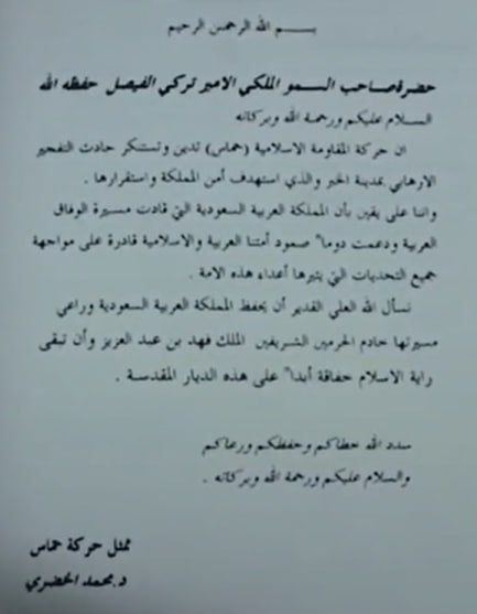 دُشن اللقاء الأول بين مدير المخابرات السعودية و موسى أبو مرزوق في مدينة جدة عام 1988 بناءاً على طلب السعودية، بداية العلاقة بين الطرفين