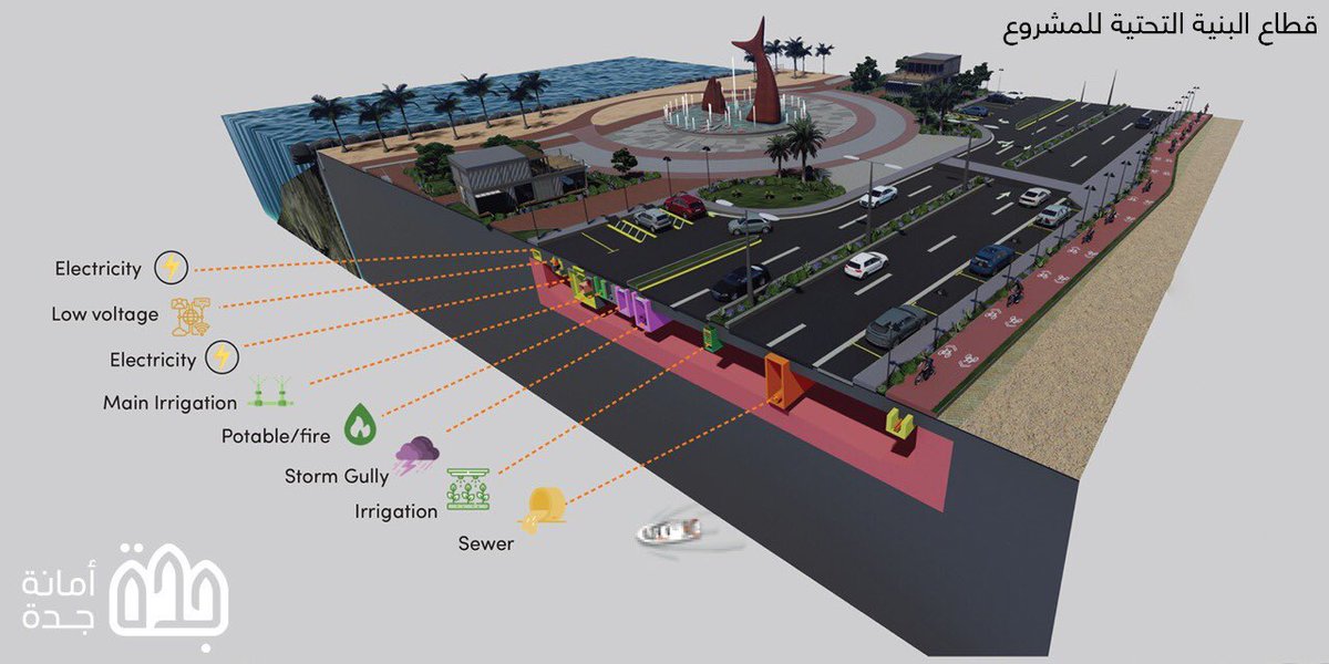 مشروع الواجهة البحرية في أبحر الجنوبية يهدف إلى تطوير ما يزيد على ١٨٠ ألف متر مربع بطول ٢،٨ كلم ويشمل إعادة تنفيذ الطريق وتنفيذ ساحات ومسارات للمشاة والدراجات ومناطق خضراء وزراعة أشجار متنوعة، وتنفيذ مناطق ألعاب ونوافير ومجسمات ودورات مياة وشاطئ رملي للسباحة ومناطق استثمارية